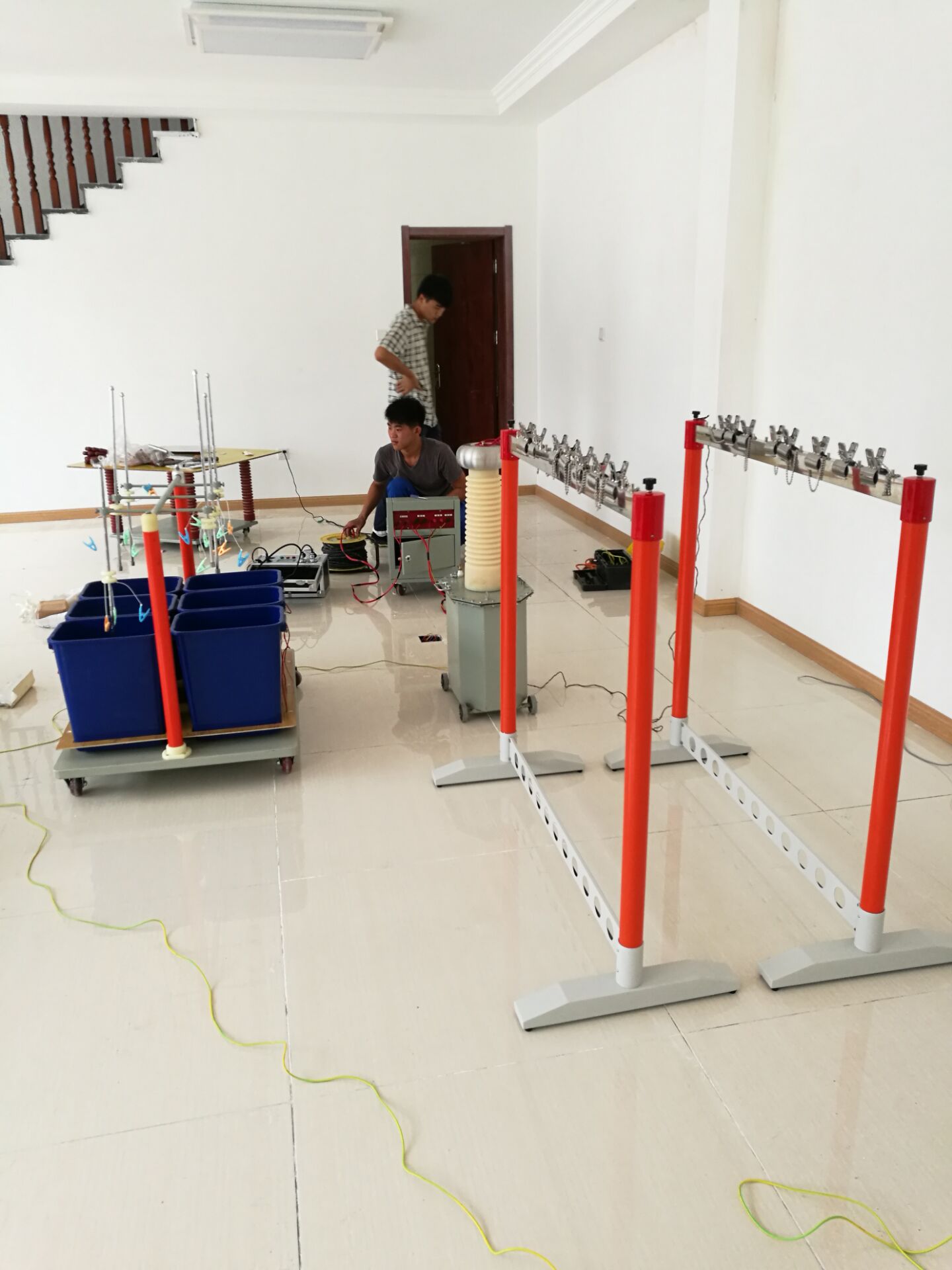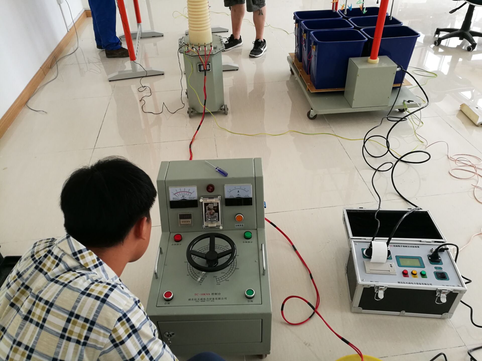 此次培訓(xùn)的設(shè)備和內(nèi)容很多,其中培訓(xùn)的主要設(shè)備是YTC1103 絕緣靴(手套)耐壓試驗裝置。李工首先對設(shè)備的原理和功能進行了全面而細致的講解。我公司的該設(shè)備比較先進,測試速度快,提高了工作效率;耐壓、高壓泄漏電流直讀,還可自動識別不合格試品,智能化程度高;可同時測試4雙絕緣靴(手套),并可讀取每只的泄漏電流,準確判斷不合格的絕緣靴(手套);底部裝配腳輪,可隨意移動。非常方便。