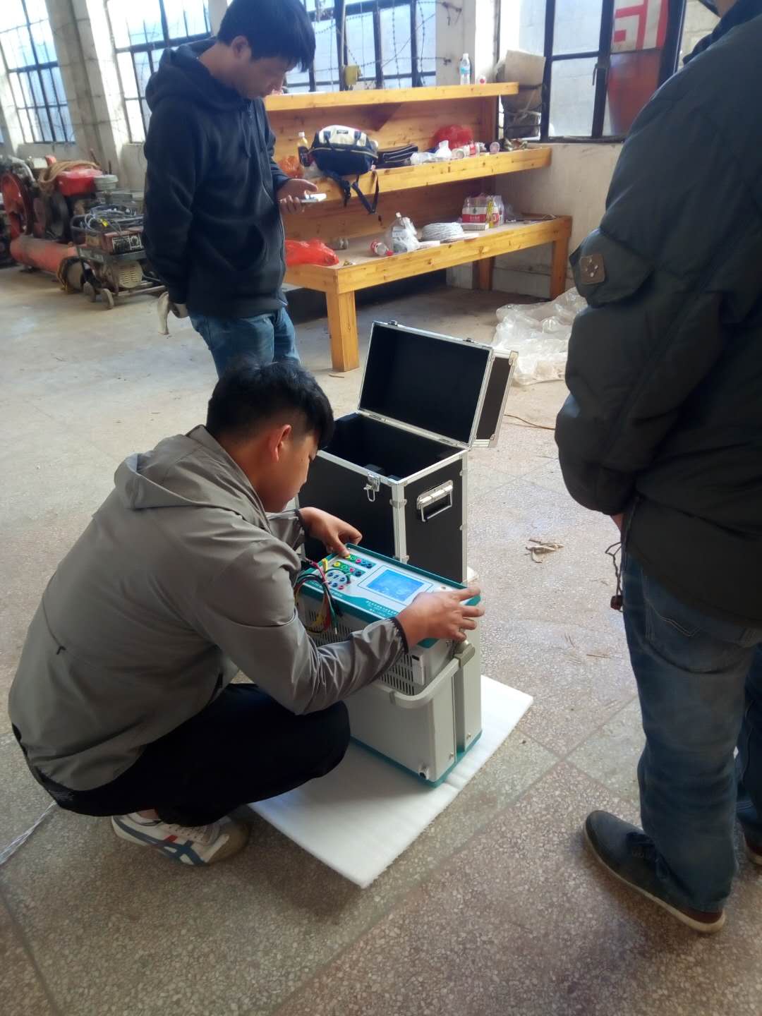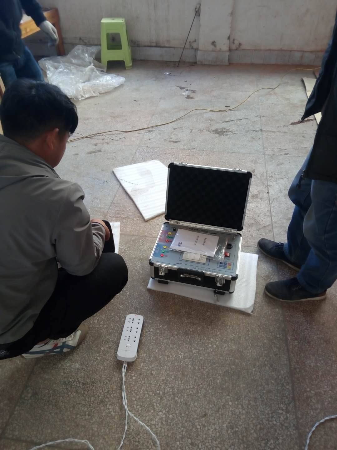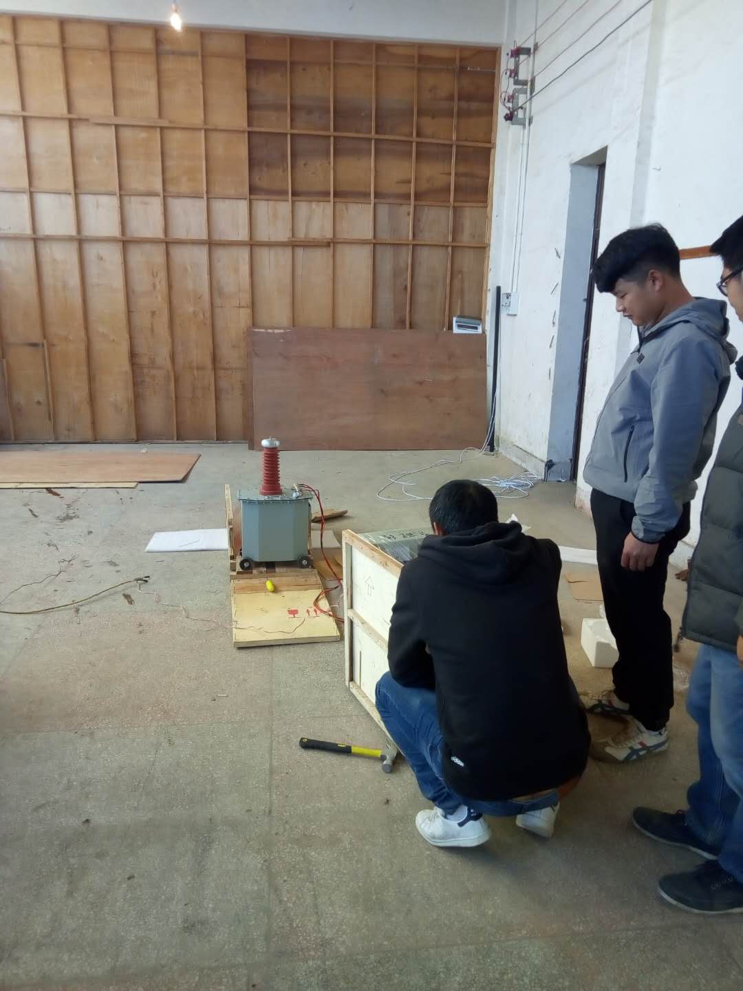 陳工很快抵達現場,與客戶進行面對面的交流,了解客戶的需求和想法。然后開始講解設備,并認真講解怎樣安全操作設備。確??蛻裘靼琢税踩僮饕院螅惞ьI客戶一起做試驗——YD-J-30kVA/50kV工頻交流耐壓試驗裝置的速度測量,行程測量,電流測量等一系列試驗。我公司的設備比較先進,采用單框芯式鐵芯結構。初級繞組饒在鐵芯上,高壓繞組在外,這種同軸布置減少了漏磁通,因而增大了繞組間的耦合。產品的外殼制成與器芯配合較佳的八角形結構,整體外形顯得美觀大方。我公司產品具有體積小、重量輕、結構緊湊、功能齊全、通用性強和使用方便等特點。特別適用于電力系統、工礦企業、科研部門等對各種高壓電氣設備、電器元件、絕緣材料進行工頻或直流高壓下的絕緣強度試驗。