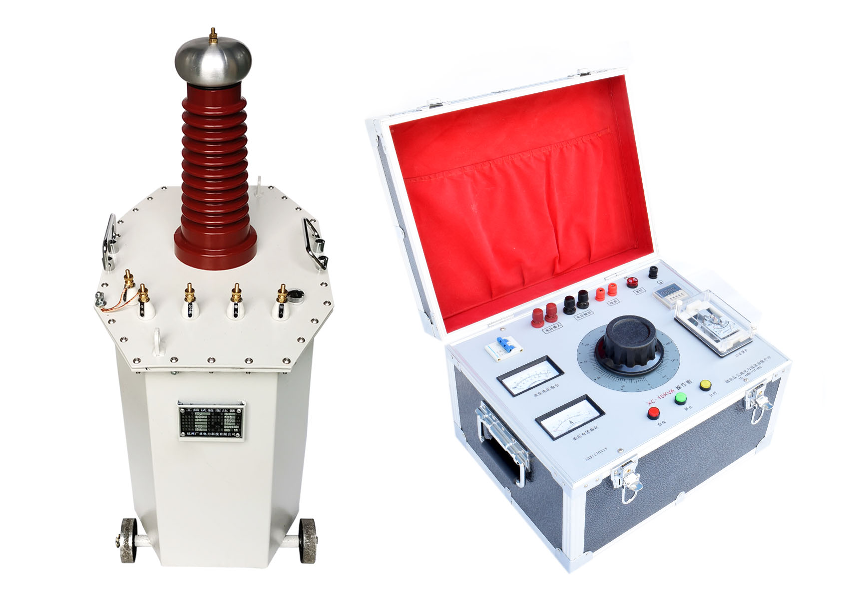 油侵式高壓試驗變壓器是由初級線圈、鐵芯和外殼等部分組成。它的作用是把高壓直流電轉化為工頻交流電,以供給被試品中的電流和電壓。初級線圈與次級線圈之間由串聯諧振裝置串聯并聯,在初級和次級之間還裝有調壓器,以便對電壓進行調整。在試驗過程中,被試品的電源、調壓器和被試品與試驗變壓器之間有一定的距離,并用金屬套管隔開,以防止由于被試品之間的放電而損壞設備。
