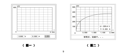 首先,在主菜單界面,旋轉(zhuǎn)鼠標(biāo)將光標(biāo)移動到【測試】選項上,按下旋轉(zhuǎn)鼠標(biāo)選擇【伏安】即可進(jìn)入伏安特性試驗設(shè)置界面。我們?nèi)〕鰧?dǎo)線包中的(紅、黑)二次線,一頭插在 CT 的二次側(cè),另一頭插在儀器的伏安特性輸出口上便可。然后我們設(shè)定好最大輸出電流和電壓后單擊【自動試驗】選擇【確定】試驗開始。此時裝置將自動按照設(shè)定值進(jìn)行升壓升流,并記錄其數(shù)值(圖一)。當(dāng)達(dá)到設(shè)定值后試驗結(jié)束,并進(jìn)行簡單的退磁,當(dāng)退磁結(jié)束后便進(jìn)入試驗結(jié)果界面(圖二)。