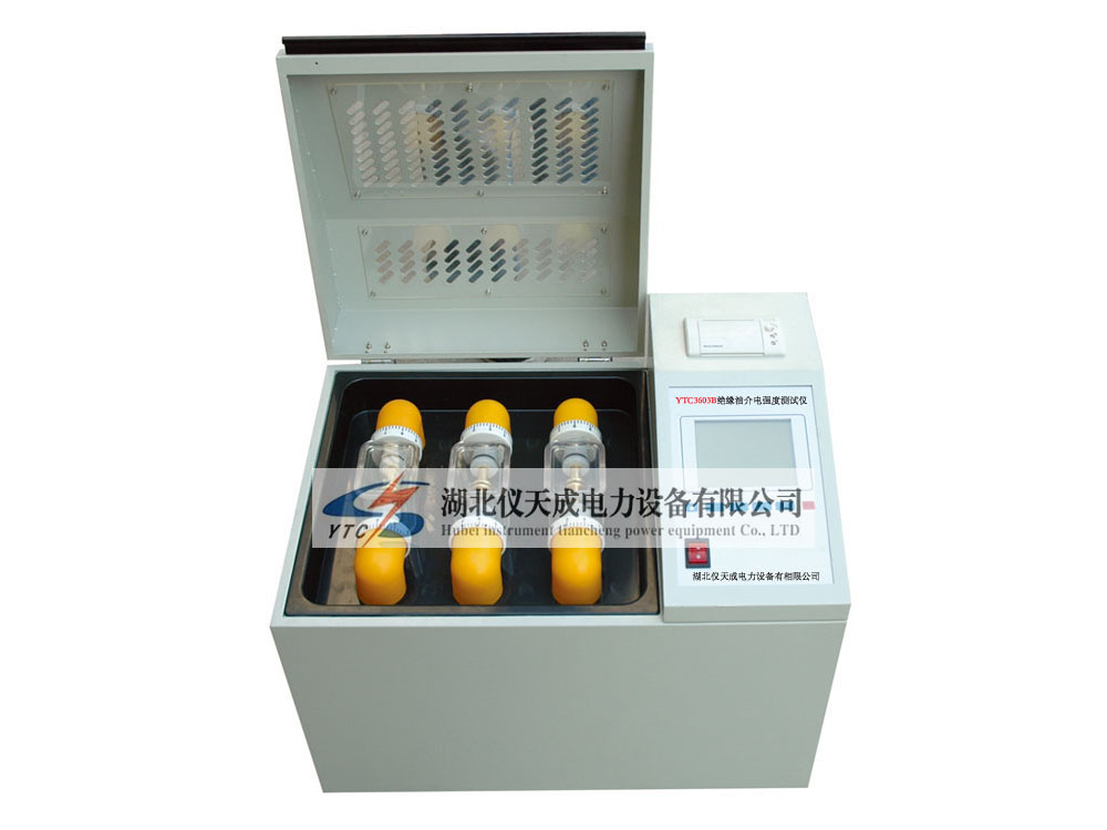 在電力系統廠礦及企業都有大量的電器設備。其內部絕緣大都是充油絕緣型的。絕緣的油介電強度測試是必測的常規測試項目。為了適應電力行業飛速發展的需要,我公司研制的YTC3603絕緣油介電強度測試儀依據新的國家標準GB/T507-2002《絕緣油擊穿電壓測定法》、行標DL429.9-91以及新的電力行業標準DL/T846,7-2004,并結合廣大用戶的普遍要求而設計制造,采用微機控制,機電一體全部自動化,測試精度高,完全克服了同類儀器易受高壓擊穿干擾的問題。有自動檢測、自動攪拌、自動處理、自動打印、數據存儲、萬年歷等功能,同時具有機電互鎖保護、接地保護等優點。具有測試精度高、操作方便、安全可靠的特點。