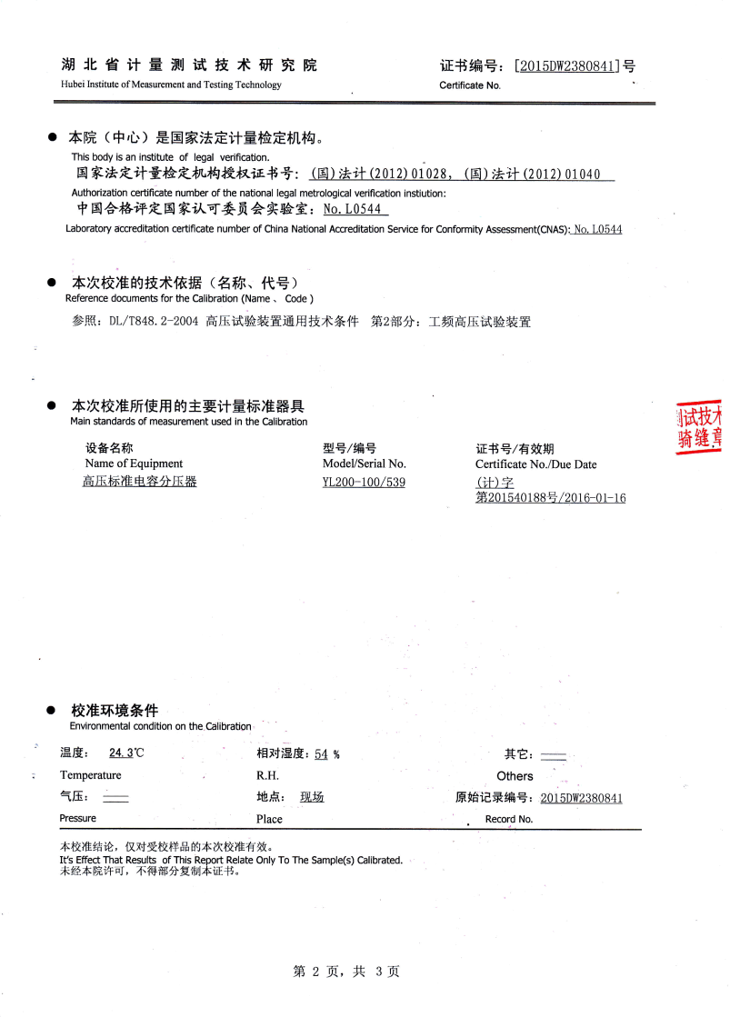 110kV及以下電壓等級電氣設備 30-300Hz 265kV 16kV