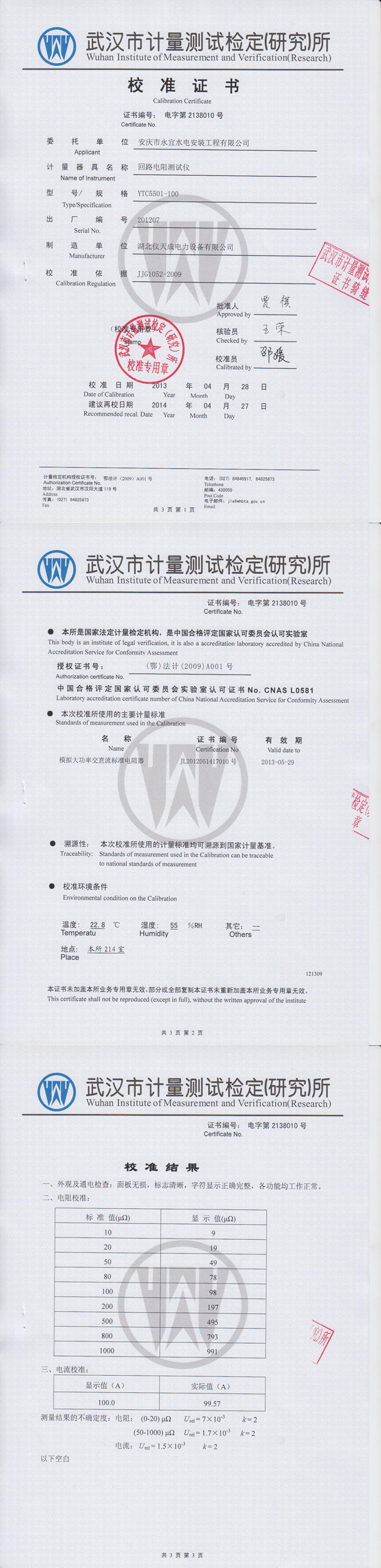 轉(zhuǎn)載:"YTC5501-100回路電阻測試儀資質(zhì)證書" 請注明來源于儀天成電力。 更多技術(shù)問題請致電儀天成電力客戶服務(wù):027-87876585,技術(shù)部專線:027-87876585,在線客服:719388481